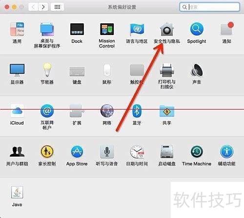 3、 进入mac系统偏好设置,点击安全性和隐私选项。