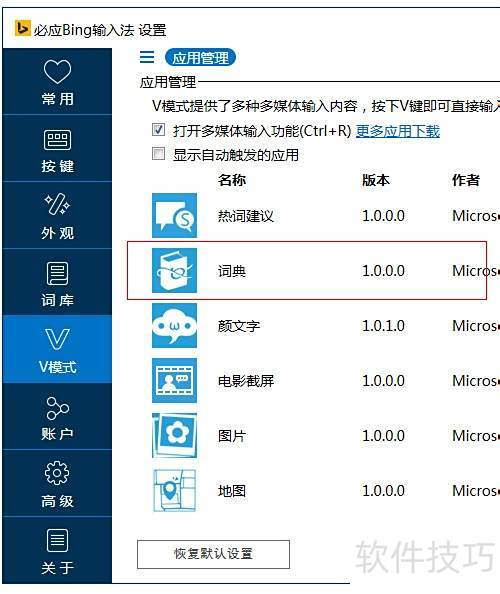 1、 必应输入法具备自动翻译功能,源于其V模式内置的词典应用。若关闭该词典功能,翻译将无法使用。接下来介绍如何将中文内容翻译为英文的具体操作步骤。