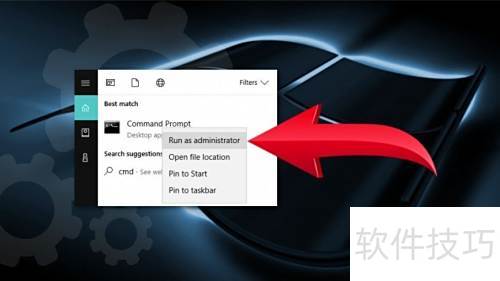 28、 右键点击条目,选择以管理员身份运行命令提示符。