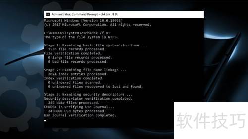 29、 输入命令 chkdsk /f X:,将 X 替换为实际盘符后按回车执行。