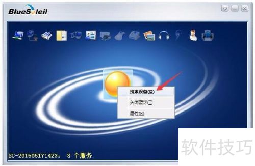 3、 启动千月软件后,在中间黄色圆圈处右击,选择搜索设备即可。