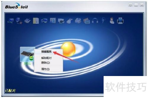 5、 当左下角显示已配对时,点击搜索服务选项。