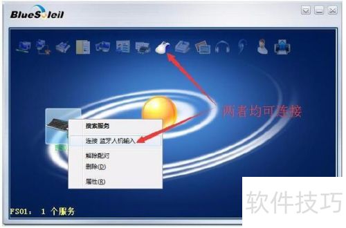 6、 双击鼠标图标或右键选择连接蓝牙人机输入即可配对蓝牙。