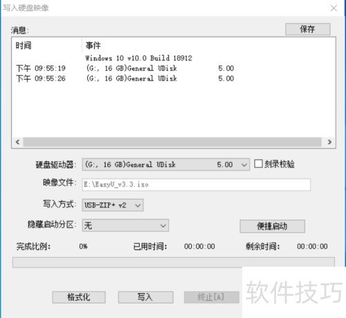 5、 依次选择启动项并写入硬盘映像,选定目标U盘,其他参数保持默认或参照图示配置,确认后开始写入,直至刻录完成即可。