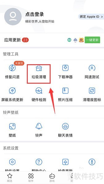 7、 在管理工具中点击清理垃圾,操作所示