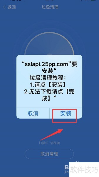 9、 出现安装提示但无需安装,点击安装按钮即可开始清理,操作所示。