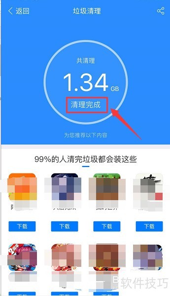 11、 清理完毕,提示出现,轻松清理超过1G空间,所示。