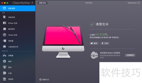 4、 具备一键智能清理功能,轻松彻底清除Mac系统垃圾文件。