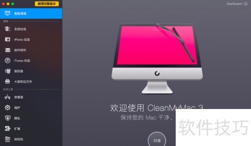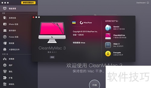 2、 安装完成后,启动CleanMyMac即可查看其整体界面,当前安装版本为3.1.1,操作简洁直观,功能布局清晰明了。