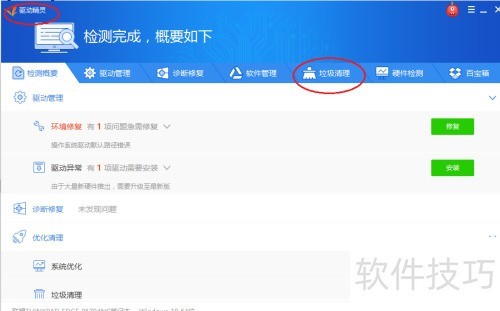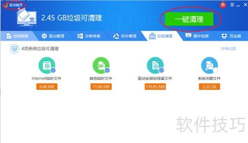 1、 打开软件,进入功能区选择垃圾清理选项。