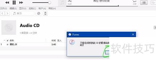 4、 打开iTunes后会弹出提示窗口,点击取消(由于是自制CD,网络专辑信息通常无法匹配)。等待文件加载完成,音轨1会出现,鼠标左键点击它,选择修改音乐信息,只需填写演唱者和歌曲名称即可,其他信息可根据个人喜好补充,按自己心情来操作。