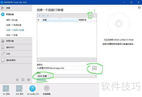2、 选择新建映像,创建音乐CD映像,点击+号添加FLAC音频文件,自定义保存路径,格式可任选其一,高级设置可自行调整,最后点击开始即可。