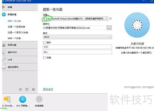 7、 加载专辑时,先载入虚拟盘,再点击新建映像,选择提取一张光盘,设备选已加载的虚拟盘,最后点击开始即可完成操作。