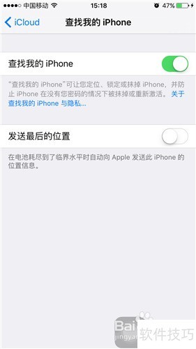 1、 首先确认手机已开启查找我的iPhone功能,下面介绍该功能的开启方法。