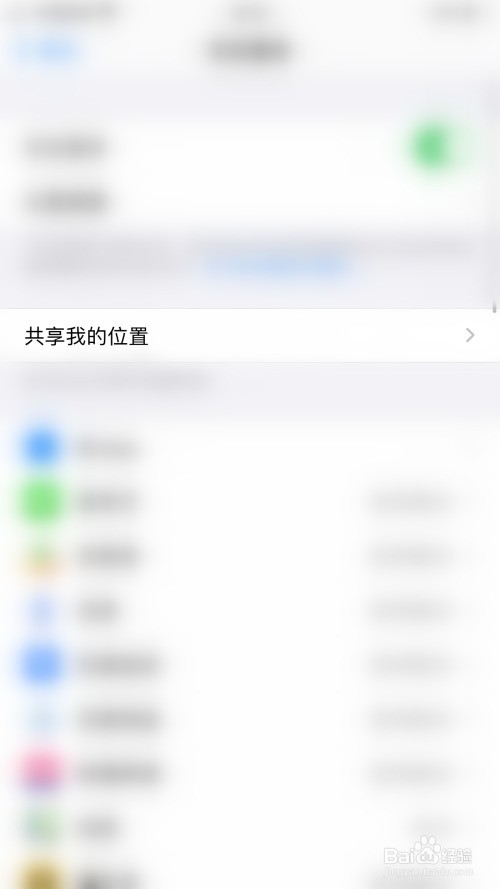 4、 在定位服务中点击共享位置,进入查找页面开启功能。