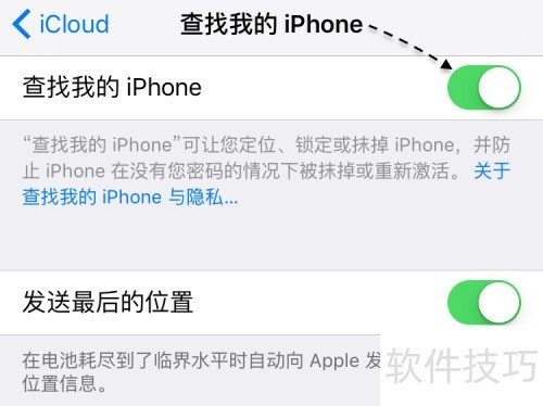 4、 所示,可在查找我的iPhone设置中点击关闭该功能。