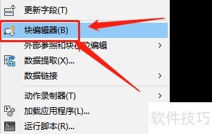 在CAD工具的下拉菜单中选择块编辑器,进入后即可编辑块,具体操作步骤如下所示。