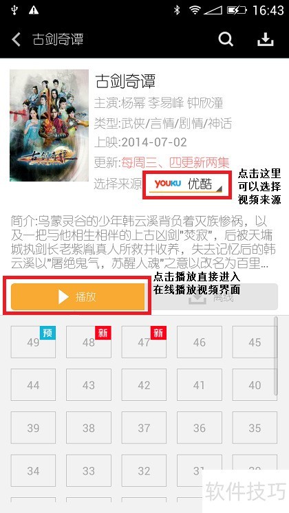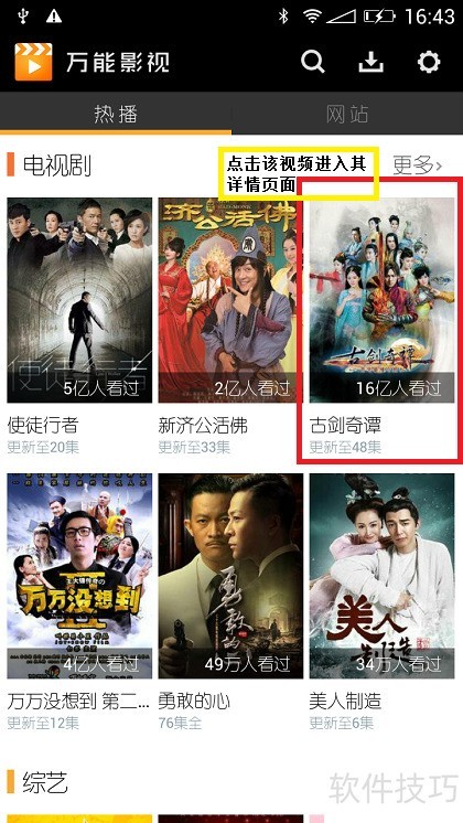 9、 在热播标签的电视剧分类中,选取古剑奇谭并点击进入其视频详情页。