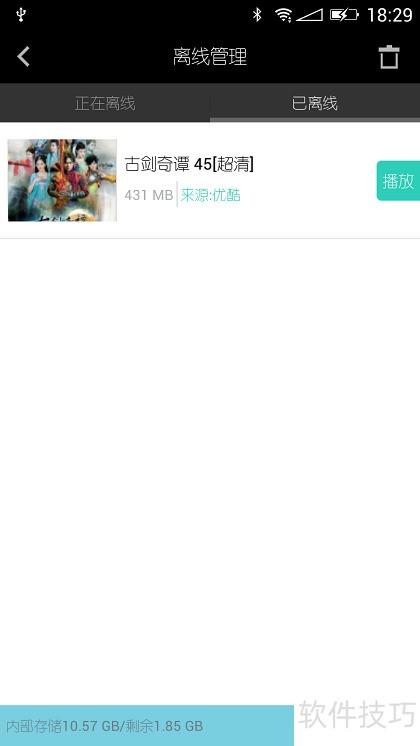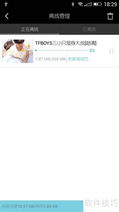 20、 文件离线中显示正在离线,离线完成后显示已离线。