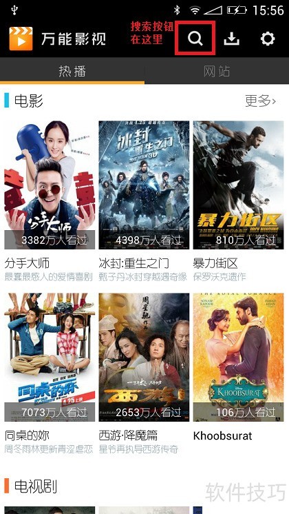 23、 在万能影视首页顶部点击搜索,进入搜索页面。