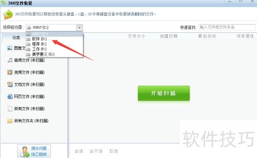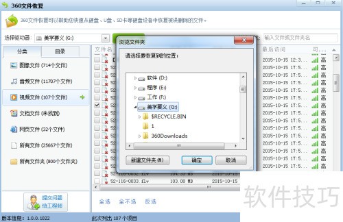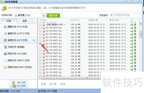 7、 在分类目录里查找需恢复的文件类别。
