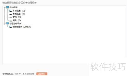 4、 点击左下角选项,从下拉菜单中选择需恢复的分区与磁盘,确认后点击开始恢复,后续步骤操作相同。