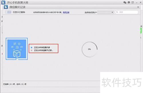 6、 点击后,软件将自动扫描并分析手机中的微信聊天记录,请稍候片刻。