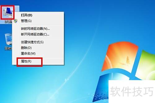 1、 右键点击桌面上的计算机图标,选择属性即可进入设置。