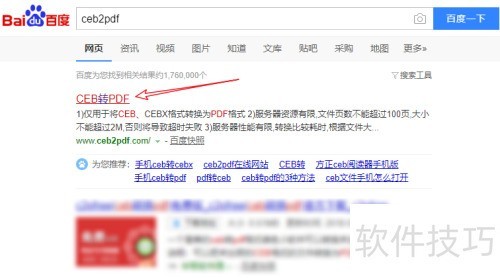 1、 通过百度搜索ceb2pdf,找到并打开对应网页即可。