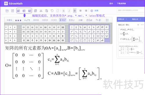 6、 支持多种文件导出,可另存为PNG、MathML、LaTeX等常用格式,便于保存与分享。同时兼容主流公式的导入功能,可直接打开MathML、LaTeX等格式文件,方便用户进行后续编辑与修改,提升使用灵活性与效率。