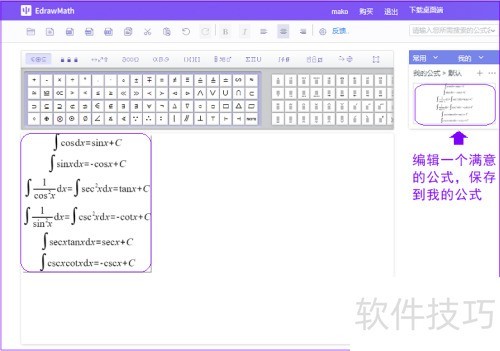 8、 编辑满意的数学公式后,可在线保存至个人公式库,便于日后调用。即便更换设备,只需登录账号,即可随时使用已收藏的公式。