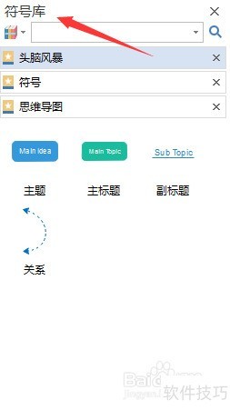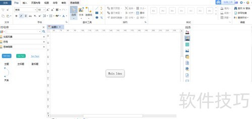 5、 用户通过选择库和菜单栏可创建思维导图,支持添加主题、编辑菜单、建立关系及添加图形元素。