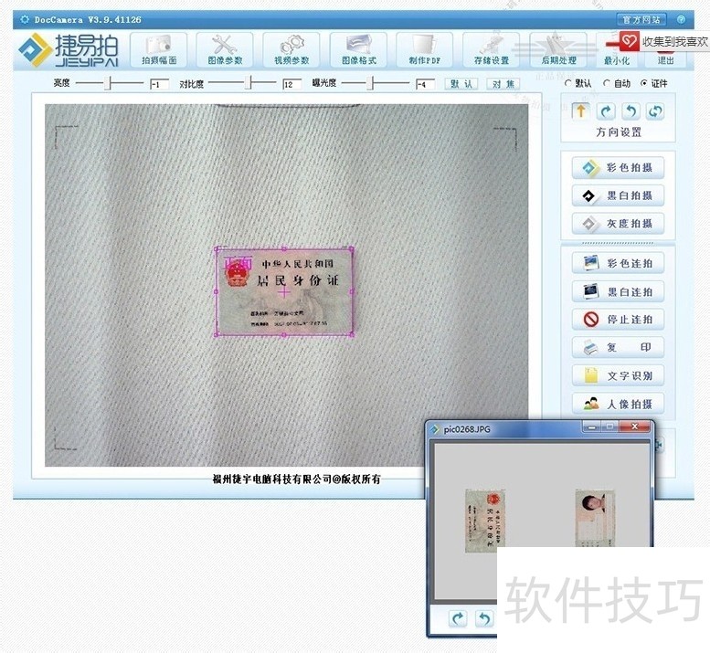 13、 扫描身份证正反面,自动合成一张图片。