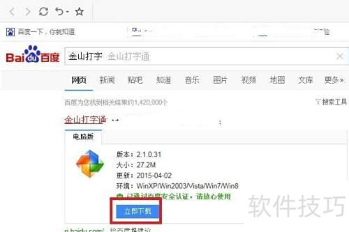 1、 打开百度搜索金山打字,点击下载并安装软件即可。