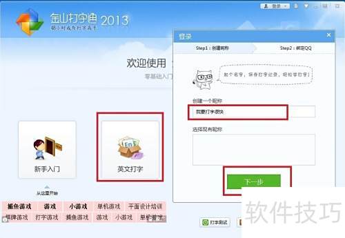 2、 双击启动软件后注册账号,可绑定QQ。初学建议先练习英文打字,熟悉键盘布局和字母位置,再逐步学习五笔输入法,循序渐进提升打字能力。