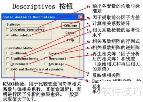 2、 选择KMO选项,查看原始结果与系数,所示。