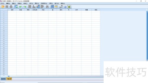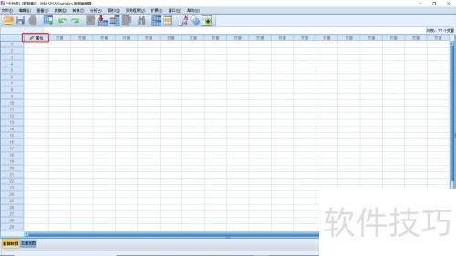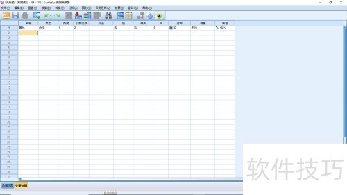 5、 变量视图窗口用于定义变量属性,每列对应不同变量名称,可添加数据文件相关信息。
