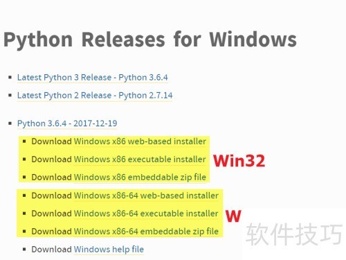 4、 根据开发平台的操作系统版本选择并下载对应的Python安装包。