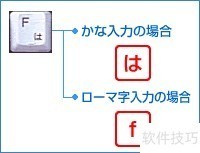 14、 如右图所示,输入字母f时,罗马字模式显示为f,而假名模式则对应显示为は。