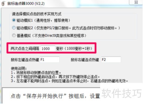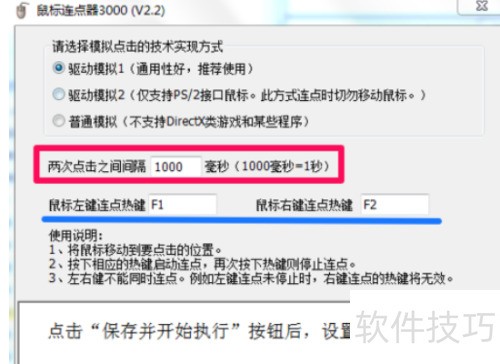 3、 将鼠标左右键连点热键设为F1和F2,保存设置后即可启动执行。
