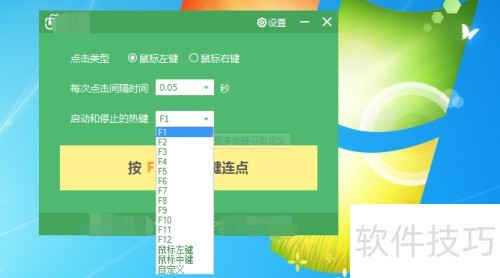 3、 界面,按需设定点击类型、间隔时长及启停快捷键即可。