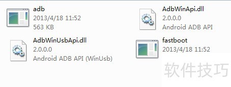 2、 解压已下载的ADB工具包,完整包包含四个文件,其中两个为exe格式,另外两个为dll格式。