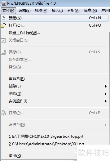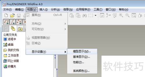 1、 启动PRO/E4.0后,系统将显示该软件的主绘图界面。