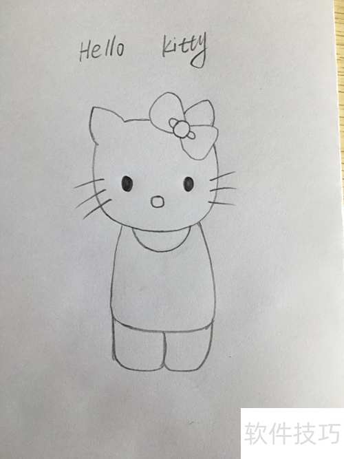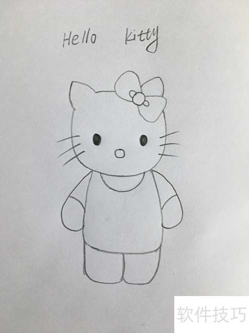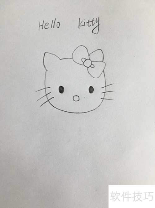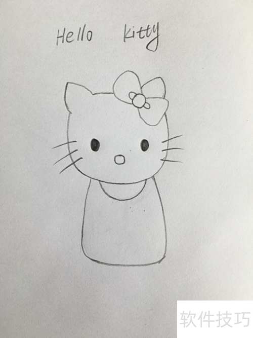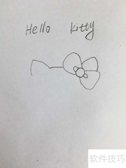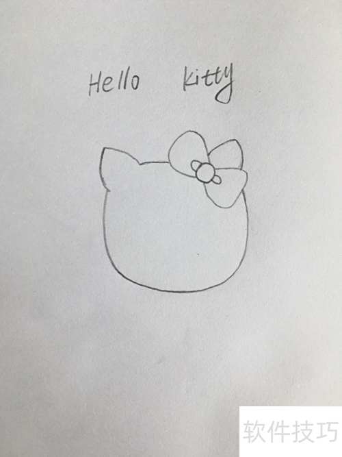 3、 先沿蝴蝶结勾勒右耳,再对称描绘左耳轮廓。