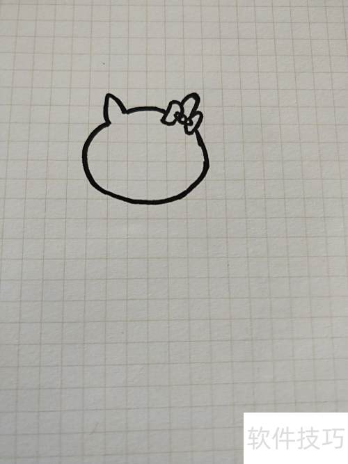 1、 先勾勒出Hello Kitty的头部外形,留意蝴蝶结所在位置。