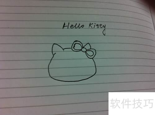 2、 在蝴蝶结周围添加Hello Kitty的脸部,重点注意耳朵的画法,可参考示意图进行绘制。