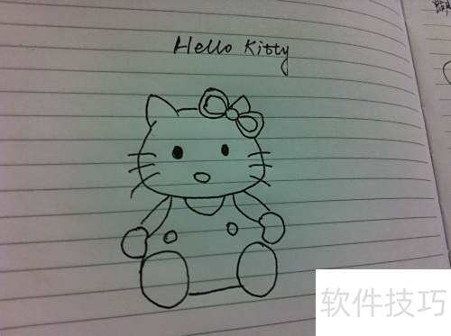 6、 在Hello Kitty的脸颊两侧各画上三条胡须,这样可爱的Hello Kitty就完成了,接下来可以继续进行下一步实验了。