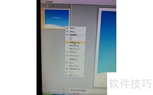 5、 将鼠标悬停于首张幻灯片,右键点击后选择插入新幻灯片。