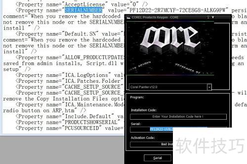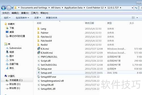 4、 进入系统C盘,依次打开路径Documents and SettingsAll UsersApplication DataCorelPainter 1212.0.1.727,找到名为Setup.xml的文件,使用记事本工具将其打开。在文件内容中按下Ctrl+F,搜索关键词SERIALNUMBER,在其后可看到形如value=.........的字段。随后切换至序列号生成工具界面,于程序选项中选择Painter 12,点击生成序列号功能,复制所生成的序列号。将复制的序列号粘贴至Setup.xml文件中SERIALNUMBER对应value引号内的位置,替换原有内容。继续查找下一行中Default.SN后的value值,同样将其替换为新生成的序列号。完成替换后,再次在文件中搜索SHOWSERIALDIALOG字段,将其后value值由false更改为true,确保该选项处于开启状态。所有修改完成后,保存并关闭文件。此操作可确保软件在下次启动时识别新序列号,并根据设置弹出序列号验证对话框,从而完成关键配置步骤。请确保操作过程中不遗漏任何字段,避免因格式错误导致配置失效。
