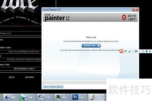 9、 安装完成后启动painter12,在激活界面选择其他激活选项,进入下一页面后点击电话激活Corel,按照提示完成后续步骤即可继续进行激活操作。